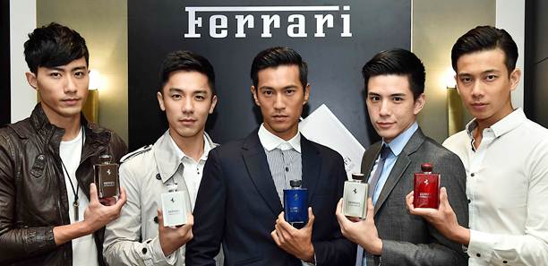 法拉利最近推出-「法拉利菁英」系列香水,記者會邀請到本屆金鐘獎最佳男主角入圍者鍾承翰,呈現藍木淡香精的動力與成熟優雅,以及4位男模特兒展現法拉利的菁英氣息。