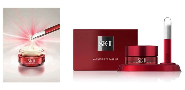 「青春磁力棒」透過特殊相斥磁力能量,將高濃度肌源再生複方更快速滲透至肌膚底層,配合微磁導入亮眼按摩手法,精確導入眼周關鍵三點,打擊眼部老化問題,達成拉提眼瞼-明亮雙眼、緊緻眼尾-提昇輪廓、收緊眼袋-喚醒雙眼等多重功效。「青春磁力棒」搭配「肌源新生賦活眼霜」,隆重推出「SK-II微磁亮眼修護組」,將於2015年1月5日在全省SOGO獨家販售,並於2015年1月20日全面強勢登台!