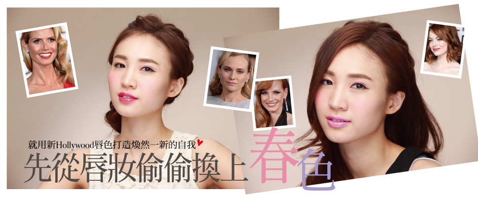 要如何最快讓人發現你〝變了〞?除了換髮型之外,換一個〝新的唇色〞絕對是讓人發現你今天不一樣的關件!今年的春妝注重唇部的顏色,而大多數的品牌除了推出10種以上的唇色外,連唇膏的接觸面都比擬唇部寬度,更輕易塗抹,今年的春妝新唇色又有哪些新畫法呢?《美周報》幫你揭開。TEXT╱黃方君,PHOTO╱劉文遠@彩虹工作室、各品牌、部分照片擷取自網路圖片,MODEL╱黃仁惠@凱妍國際有限公司,MAKE UP&HAIR╱Sophia&Yumi