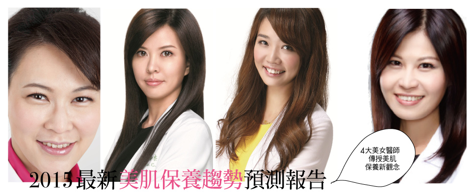 又來到新的一年,《美周報》特地在年前幫讀者邀訪了台灣最火紅的4大美女醫師,分別來自不同”美”的產業,從皮膚科醫師、整形醫師、營養師、中醫師,請她們點出2015的肌膚養成新觀念,傳授保養術,掌握美肌新氣象。TEXT╱黃方君,PHOTO╱楊川宏、各品牌、部分照片擷取自網路圖片,MODEL╱劉育君,MAKE UP&HAIR╱郭彥伶