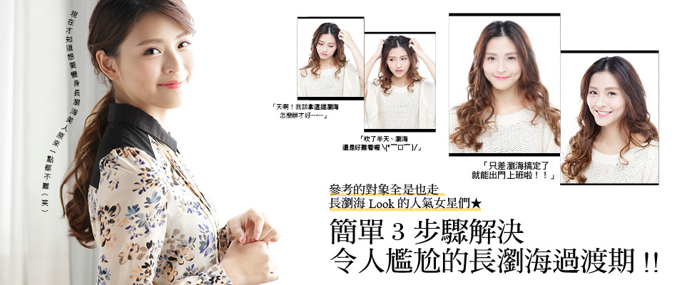 不知道大家有沒有發現以往撞髮率第一名的妹妹頭瀏海似乎變成是小女生專屬!?近來不論是韓國明星或是日本名人都早已捨棄only可愛感的短瀏海轉而慢慢將瀏海流長了。不過,在這段短→長的過渡期間,該怎麼整理才能擺脫〝阿雜〞感?跟著美周報的示範教學步驟,讓討人厭的長瀏海也能美美現身❤