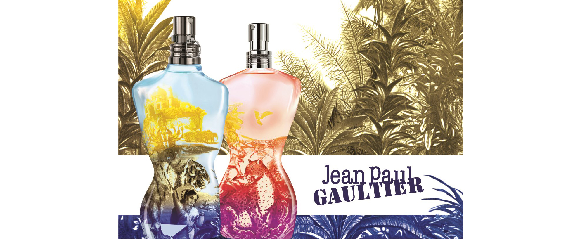 此系列男女對香的靈感取自高堤耶春夏高級訂製服的設計印花圖騰,融合了野生動物、印度舞者與男女神祇等元素,創造出一種在充滿暖色基調與雜蓊鬱綠印花中,歡欣熱鬧的驚歎氛圍!