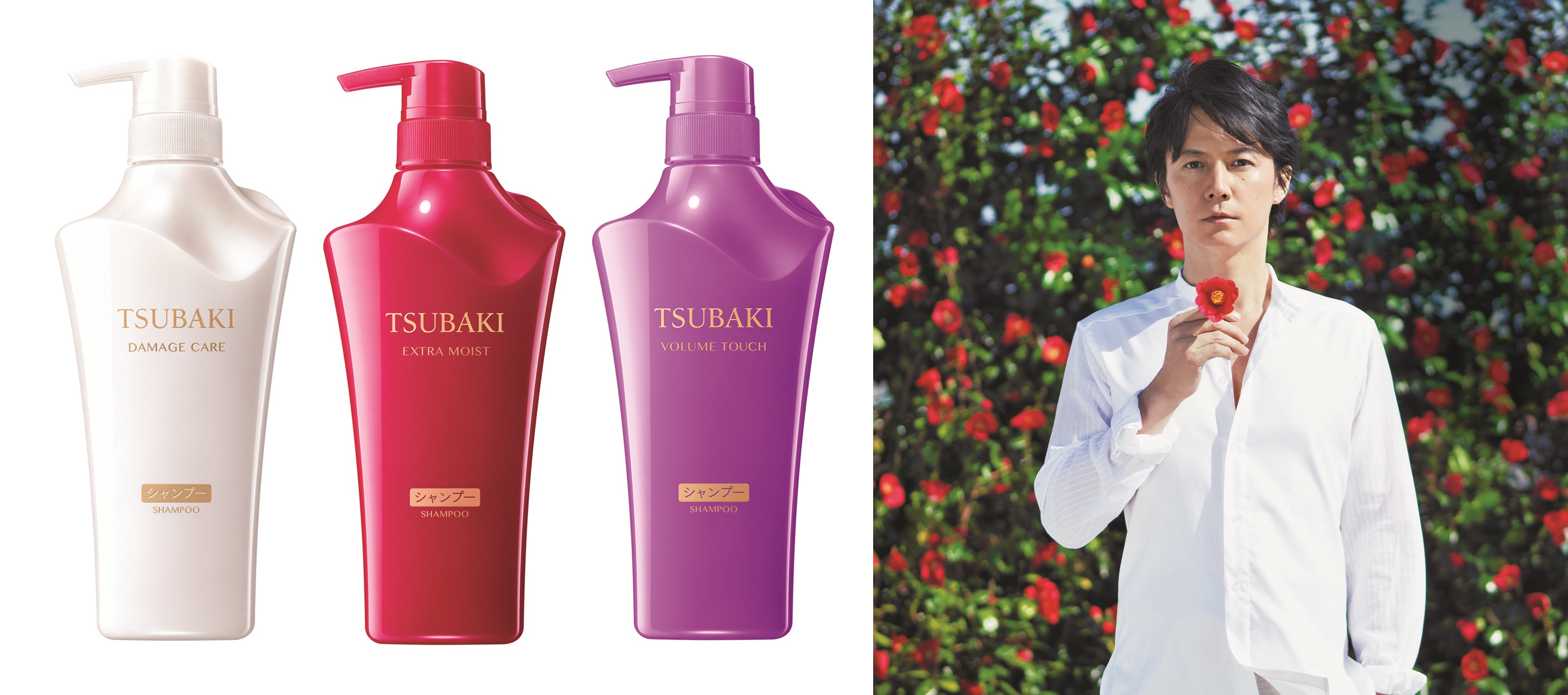 原來,是日本頂級開架髮品品牌TSUBAKI思波綺,在今年帶著煥然一新的形象全新蛻變出發,不但找來了女優鈴木京香、杏、三吉彩花共同代言,更首度邀請到日本一線全方位藝人福山雅治來擔任男性代言人!(福山雅治的形象照超帥,記者會現場的大幅形象照還讓小編默默地深情痴望了好久>///<),不過,福山雅治明明是一頭帥氣的短髮,和「秀髮」有什麼關連啊?原來,是因為TSUBAKI思波綺的主要成分「椿麴」,是來自福山雅治的故鄉--長崎縣,因為有了這樣一層關係,所以品牌才會想到找這位大帥哥來當代言人,是說從2007年TSUBAKI思波綺在台上市以來,到現在已熱銷近3億瓶,這次又請到日本的A咖帥哥福山雅治,接下來的業績肯定又要創新高了吧!