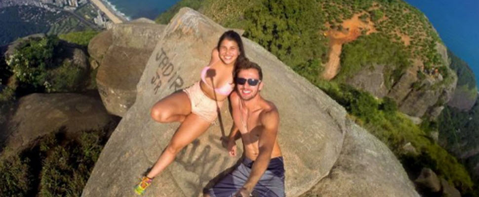 男主角是現年23歲的佩雷拉(Leonardo Edson Pereira),他帶著18歲的小女友到巴西里約熱內盧附近的高山上,找到堪稱最可怕的懸崖,僅靠單手之力掛在石頭上,女友則運用突出的尖石,讓自己的雙腿完全懸空,兩人的勇氣相當讓人佩服。