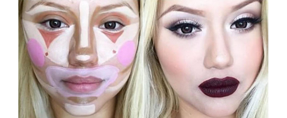 BellaDeLune利用粉紅色、深咖啡色與白色化出小丑的輪廓,再慢慢的均勻推開,當所有顏色混在一起後,就出現令人意想不到的容貌,BellaDeLune從小丑變身成大美人,肌膚變的平滑又美麗。