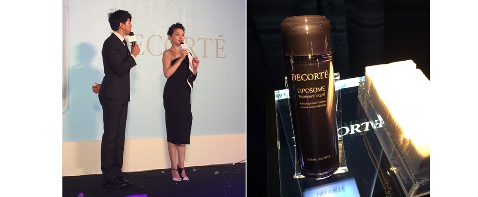 2015年12月即將迎接45歲生日的黛珂,針對此問題推出了一瓶新次元的高機能化妝水『超微脂修護源露』,利用琵琶葉萃取與花竹柏根萃取的美膚關鍵成分PMZ,以容積運能擴大空間的概念,來提升肌膚彈潤光采,而為了讓這些美膚成分可以更快速的進入肌膚底層作用,添加新開發的兩種活性磷脂質(H具柔軟脂質膜、L具有安定作用)的升級版多重層微脂囊體技術,歷經10年的專心研究,將有效成分包裹於其中,在接觸肌膚的同時便會將美容成分送到角質層的每個角落,使效能發揮到最大值。當然光用聽的可能還不夠清楚,高絲研究所博士更現場示範相關實驗,取材〝微脂囊分散原液〞和他牌乳液加水調和出濃度相當的〝一般乳化物〞,透過滴管與模擬角質層膜的圓柱體來比較看看其滲透度,從實驗結果可看出微脂囊分散原液一滴入水中就立即擴散並滲透至底部;而一般乳化物則是停留在表面,由此比較實驗顯示,微脂囊分散原液的分子相當細小,所以才會有如此高的滲透率。
