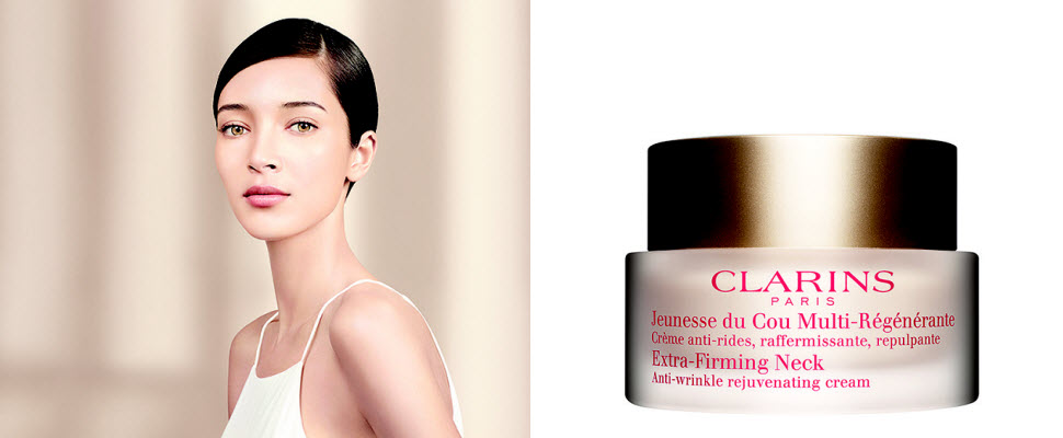 保養品牌克蘭詩將於今年9月上市「新一代超性感美頸霜」,含有有機綠香蕉、檸檬百里香與向日葵生長激素,能夠增生膠原蛋白提升肌膚的緊實度,可幫助頸部肌膚抵擋重複彎曲與旋轉;綠藻萃取物能促進玻尿酸生成提升肌膚水潤感,與擁有隱形提拉膜美稱的有機燕麥多醣體來撫平細紋;另外還添加植物甘油,提升肌膚保水力,而超微粒子粉末讓肌膚擁有天鵝絨的觸感。