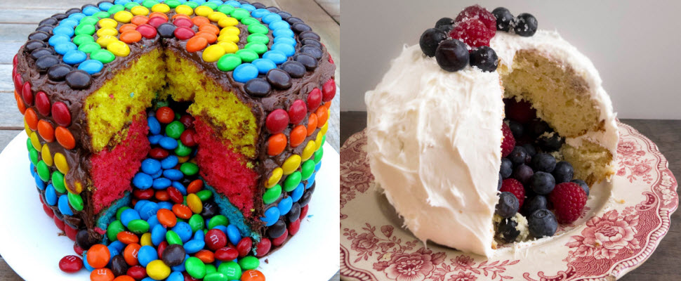 小編最近發現充滿驚喜的蛋糕,就是歐美最近流行的「Pinata cake」外型看似平凡,但一刀劃下去看見的不是鮮奶油、布丁或是芋頭餡料,而是如泉水般湧出的MM巧克力、水果軟糖或是新鮮水果,讓切蛋糕充滿驚喜與趣味,女孩們收到這樣的蛋糕內心一定會瘋狂尖叫的!