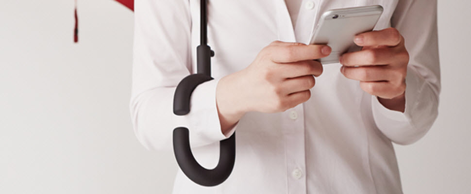 最近韓國kt design為客戶造一把限量雨傘,把手是根據人體工學做成C字形,讓雨傘可以掛在手腕處,就算下雨也能很優雅的撐傘滑手機找地址,或是即時回覆客戶訊息,真的超級方便!但小編還是要提醒,沒事不要邊走路邊使用手機,因為真的很危險。