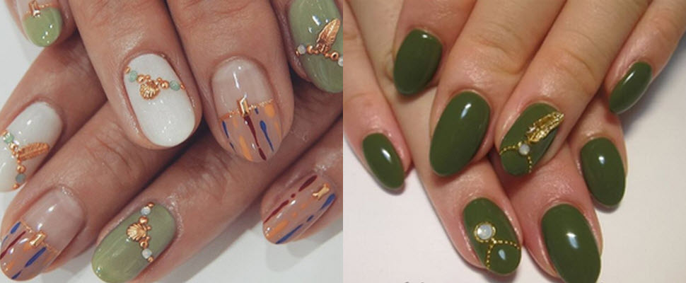 今年秋冬指彩除了流行綠色系外,還有一個重要的流行元素就是「羽毛」,綠色的基底搭配上仿金箔的羽毛,讓整體質感加倍,也為低調、沉實的秋冬指彩增添亮點,現在就來看看今天秋冬還有哪些指彩款式可以選擇吧~