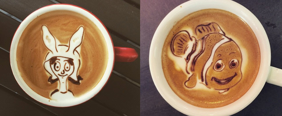 躺在他咖啡上的都是紅透半片天的卡通人物,像是snoopy、Baymax、海底總動員中的Nemo、海綿寶寶、派大星或是最近正夯的小小兵,喝下這杯咖啡一定能勾起你滿滿的童年回憶!
