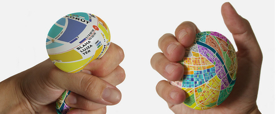 設計師Dénes Sáto推出一款超特別的「地圖蛋」,它的外觀是顆球狀,你用力擠壓前它就像是顆平凡無奇的壓力球,上頭看不到任何地圖該有的東西,但是經擠壓後,該區域就會被放大出現路名與附近的知名地標像是車站、飯店、旅遊景點,重點是不會讓你看起來像是個迷路的觀光客。