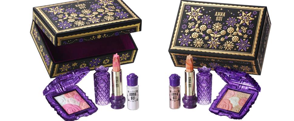 充滿華麗、搖滾風格的紐約設計師Anna Sui透過童心想像力,細膩捕捉雪花反射的絢爛光芒,將閃耀元素幻化成今年最搖滾的聖誕彩妝,推出兩款限量「雪綻光紫境寶盒彩妝組」,以『01.冰雪之愛』、『02.融雪之心』為名,詮釋著宛如被純淨白雪包覆的肌膚,閃爍冰晶般透亮的致命誘惑。彩妝組合內容包含頰彩、唇膏、亮彩粉;華麗漸層的薔薇頰色被紫色冰晶包覆著,依然恣意綻放輕柔光彩,幻彩唇膏融合顯色與珠光質地,像是將多色的魔法裝進流星裡,隨時變換不同光輝,最後,在眼眸、雙頰、身體或秀髮點綴飄舞般的雪花亮彩粉,為妳的聖誕妝容釋放絕對搖滾的魅光!