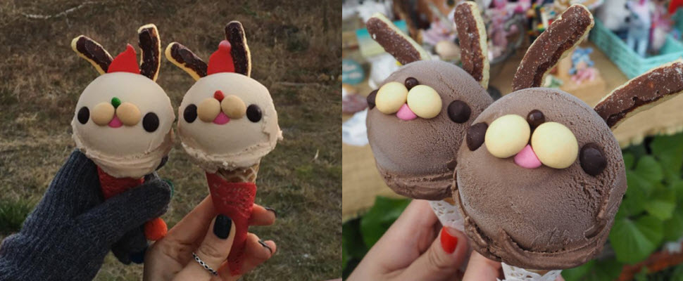 今天的主角登場囉~超級萌的邦妮冰淇淋,以球狀冰淇淋打造出邦妮滾滾的頭型,再利用巧克力和餅乾做裝飾,就成了超級討喜的邦妮冰淇淋,而且店家也會因應節日發揮巧思,像是聖誕節時邦妮頭上就會戴上小紅帽,鼻子也會用不用顏色的巧克力來裝飾,三五好友一人買一隻就可以聚集起來拍照囉~除了基本的香草口味外,當然還有草莓與巧克力,但香草似乎是最熱銷的!