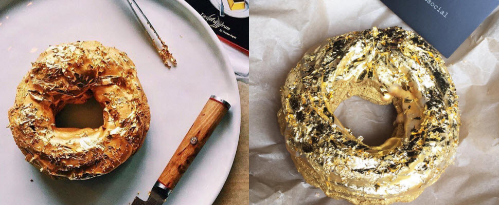 巧克力、蛋糕或保養品、彩妝品添加金箔用來吸引消費者是常見行銷手法,但通常加入薄薄一片金箔就已經很了不起,會讓女孩們因此為之瘋狂,但如果現在有一個甜甜圈外皮全都是金箔,你會不會想要嘗試呢?位於美國布魯克林區的Manila Social Club推出2016限定甜點黃金香檳甜甜圈,要來搶攻金字塔頂端的消費者囉~