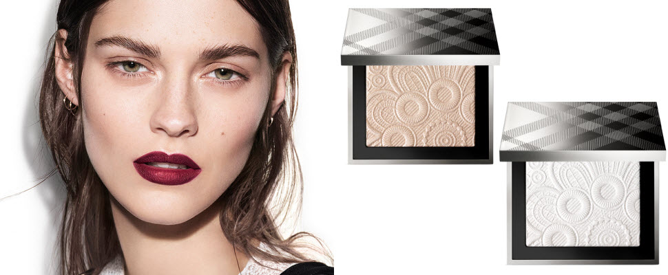 BURBERRY2016春夏服裝秀上,將經典外套和機能性服飾搭配皇室徽章圖案,完美呈現極具衝擊性的暗紅色調、金屬氣息與英式蕾絲的結合!BURBERRY春夏彩妝也以這為靈感推出兩款限定款蕾絲蜜粉餅,相信愛美的女人一定會被烙印在粉體上的蕾絲所吸引。這款蜜粉餅含有珍珠白的細緻粉餅精巧地提亮膚色,半透明的質地讓肌膚閃耀自然光澤。