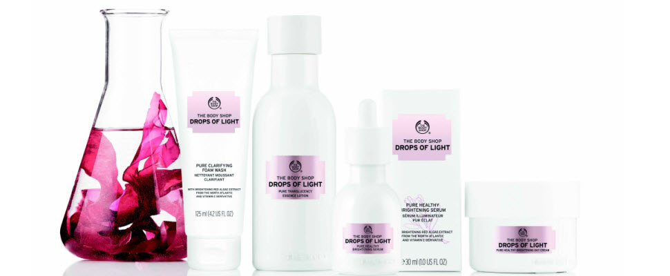 THE BODY SHOP推出的煥白晶透系列是蘊含珍貴的北大西洋深海紅藻、維他命C衍生物及植物性玻尿酸等多項頂級複方煥白菁萃,臉部肌膚由內而外均勻透亮、煥發水嫩白皙光采。生長在冰冷的北大西洋深海中的紅藻,富含多種天然礦物質、營養素與維他命C,其中的酪氨酸酶」能夠有效抑制肌膚黑色素過度增生,減緩黑色素的快速傳遞,以預防臉部黑斑產生。特別提醒使用煥白晶透系列再搭配按摩就能使肌膚煥白透亮、淨斑修護,有效改善亮度與光澤、均勻膚色,同時保水緊緻,使肌膚更加光滑、緊緻澎潤。