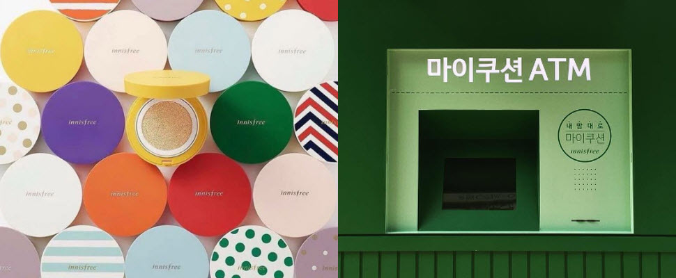 氣墊粉餅當道,不論日韓或歐美品牌都相繼推出氣墊粉餅,但看來看去似乎都大同小異,沒有什麼特別吸引人的點,這時當大家心中都認為品牌玩不出新把戲時,來自韓國的innisfree就要讓大家眼睛為之一亮!他們一口氣推出100款氣墊粉盒,而且還推出氣墊粉餅ATM喔!根本就是要逼美妝迷把錢噴光~