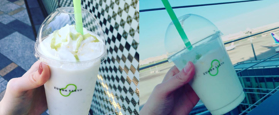本來只有在仙台販售毛豆相關製品的「ずんだ茶寮(毛豆茶屋)」,現在跑到東京羽田機場開始販售飲料囉~牛奶加上香草口味的遙遙飲,最後再用毛豆點綴,就成了飲品界的夢幻逸品。幸福的甜味在嘴裡蔓延開來,還可以喝到毛豆泥微微的果粒感,真的是太幸福啦~這款毛豆遙遙飲售價為日幣450,大約台幣100多元,女孩下次回台灣前記得先去嘗鮮一下喔!