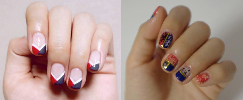 如果你是忙碌的小資女,一直有穿上韓服的願望但是又沒時間飛韓國,那也可以透過韓服風美甲過過乾癮喔!首先登場的是對比強烈的配色,即使是平常簡約的穿搭風格也可以很適合喔!或是可以把傳統小圖示放在指甲上,看起來也不突兀。