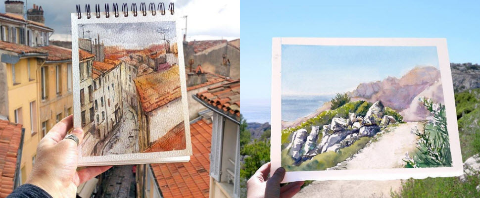 旅遊時你會選擇用什麼方法留下紀念呢?像小編就會收集明信片,每當想出國充電又因為各種原因沒辦法出國時,就會翻一翻這些明信片,美好回憶瞬間湧現,當然也有人喜歡收集當地特色小物,或是用相機記錄,不管你選擇哪種紀念方式,只要能夠留下這些美好回憶都是好的!小編今天要介紹居住在南法的俄羅斯人Elena Efremova,她是一名熱愛旅行與繪畫的水彩畫家,到任何城市旅行都會運用畫筆捕捉眼前的美景,最後再將作品與景物交疊融合在一起,現在我們就一起跟著她的畫作去旅行吧!