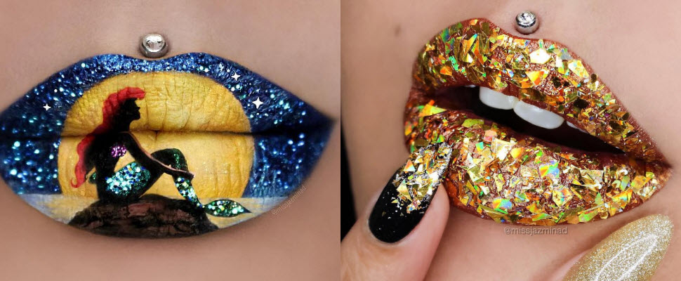 外國網友missjazminad運用各式各樣的彩繪技巧與工具,打破大眾對於唇彩既有的印象,變化出一款款美到不可思議令人讚嘆的唇妝!上面幾款比較像是油畫,下面則是前衛風格,將大小不一、切割面不同的水鑽沾滿整個雙唇,經由光線個折射呈現出閃耀動人的美唇,或是黑唇上點綴幾顆鉚釘,展現出不一樣的個性美。女孩們明天就讓自己的唇變得不一樣吧~