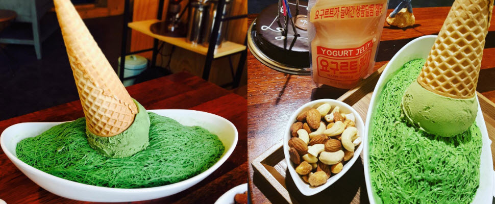 最近滑韓妞IG的你應該有發現這款抹茶冰曝光率極高!!!!!顛倒的抹茶冰淇淋不要以為是店家不小心放錯,這真的就是它的造型,這種照片發在IG,你的手機一定會瘋狂噹噹噹,因為大家都想給你一個讚啊!