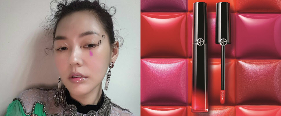 讓小S獲得滿堂彩的唇彩就是 Giorgio Armani的奢華訂製琉光唇萃與奢華絲絨訂製唇萃!小S先以奢華訂製琉光唇萃#501打造如琉光水潤般的飽滿色澤,接著再用今夏最新限量推出的奢華絲絨訂製唇萃#511點在唇中央,增添唇妝的活潑粉嫩感。愛搞怪的小S特別在臉上畫上童趣的水滴,點亮整體造型,小編偷偷告訴大家可愛的水滴也是用這支唇彩完成的喔!