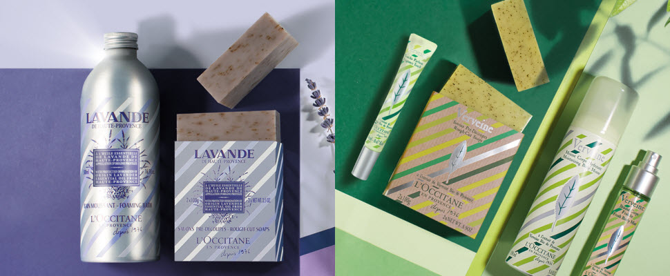 喜歡歐舒丹的朋友應該都知道,馬鞭草對歐舒丹而言別具意義,因為該品牌第一個推出的香氛系列就是馬鞭草,而且還成為長久以來的明星商品。歐舒丹歡慶40周年,特別推出馬鞭草系列限量包裝以精緻馬鞭草葉為主角結合簡約的對角斜紋線條,仿佛翱翔天際,俯瞰普羅旺斯德隆省的原野。另外,普羅旺斯的美好產物薰衣草也成為40周年的主角,包裝是簡約的對角斜紋線條,象徵覆滿普羅旺斯高地的薰衣草,彷彿自空中俯瞰收割前的薰衣草原,條條藍紋映入眼簾中,充分感受普羅旺斯高地的美好。