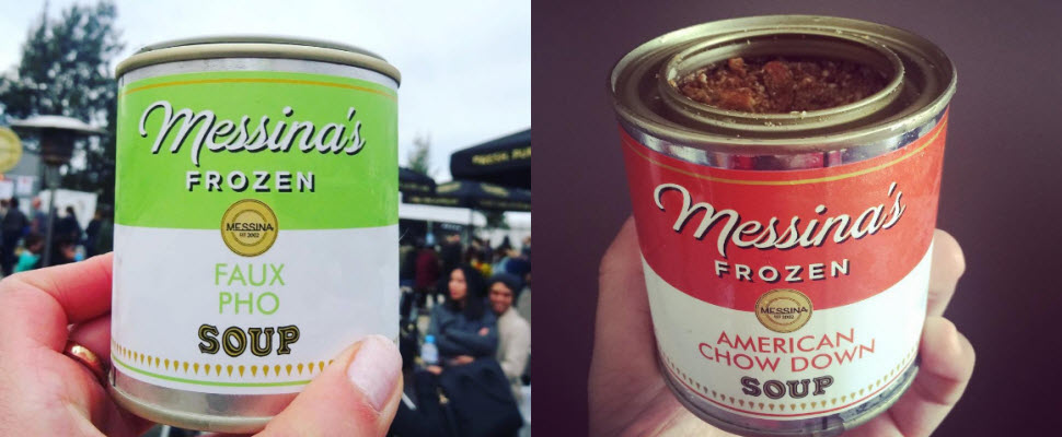 位於澳洲的Gelato Messina真的很調皮!包裝的設計真的就跟超市販售的湯罐幾乎一模一樣,連字體設計也刻意模仿,罐上的口味也故意寫上經典的罐頭濃湯名,乍看之下真的很難分辦出真假,但相信小編這真的不是冷凍的雞湯啦~
