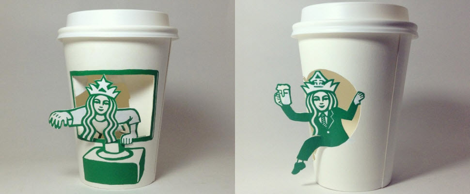 這不是大家熟悉的星巴克外帶杯嗎?但仔細一看發現好像有點不一樣呢?難道是星巴克又推出什麼新招了嗎?其實不是,這是韓國藝術家김수민Soo Min Kim的作品,他每次喝完星巴克都會將保留紙杯,並且利用自己的巧手賦予紙杯新生命,現在就來看看,紙杯碰上藝術家的創意,會激盪出什麼火花呢?