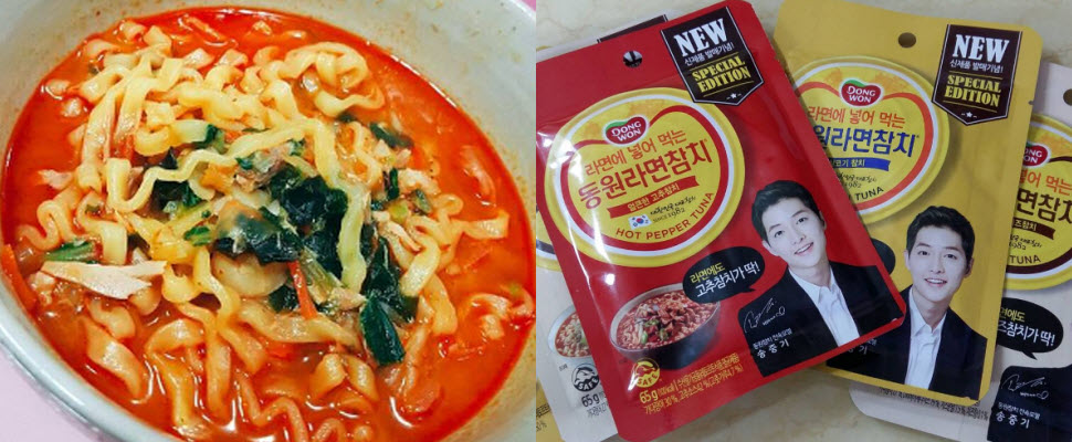 日前鮪魚罐頭品牌동원참치推出鮪魚泡麵廣受好評,最近則是推出專屬泡麵用的鮪魚隨手包,有原味、起司、辣味等三種口味。每款包裝上都印有國民老公宋仲基,根本就是逼人三種口味都要買回家收藏。感覺有老公的加持,泡麵應該會更加美味,而且也不會空虛囉~