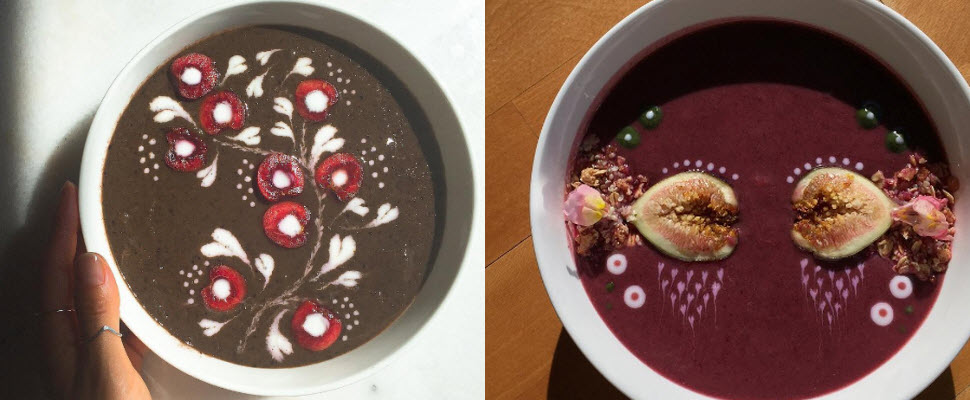 Sori直接在蔬果昔上面作畫,用自由奔放的筆觸畫出一碗碗療癒人心又充滿營養的早點!Sori平常就會練習各種手寫字與曼陀羅畫作,他藉機將自己的藝術天分與食物做結合,創作出一碗碗獨一無二的蔬果昔,因此可以看到他的作品中大多帶有禪意。