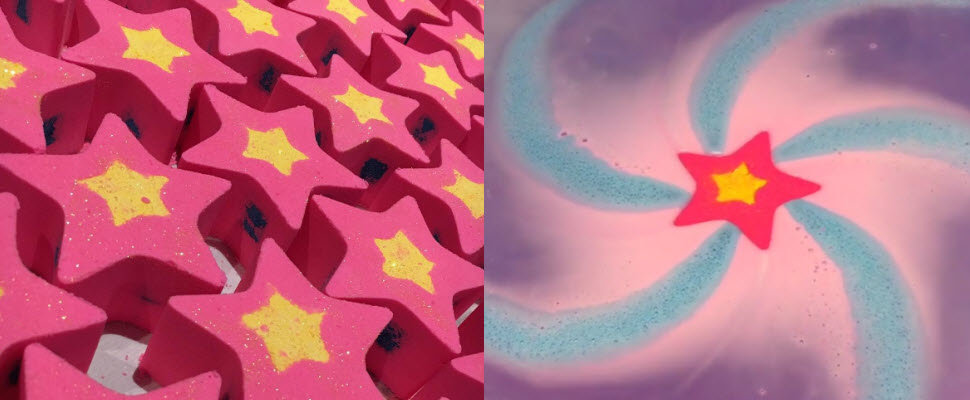 你以為這顆沐浴球只有顏色很特別嗎?其實最特別的是,每一種色料的融解速度不一樣,所以放到水裡會呈現出不同圖案,像星星造型就會不斷旋轉,呈現出七彩效果;龍捲風造型則是會形成棉花糖顏色,小光用看的就覺得好療癒喔~