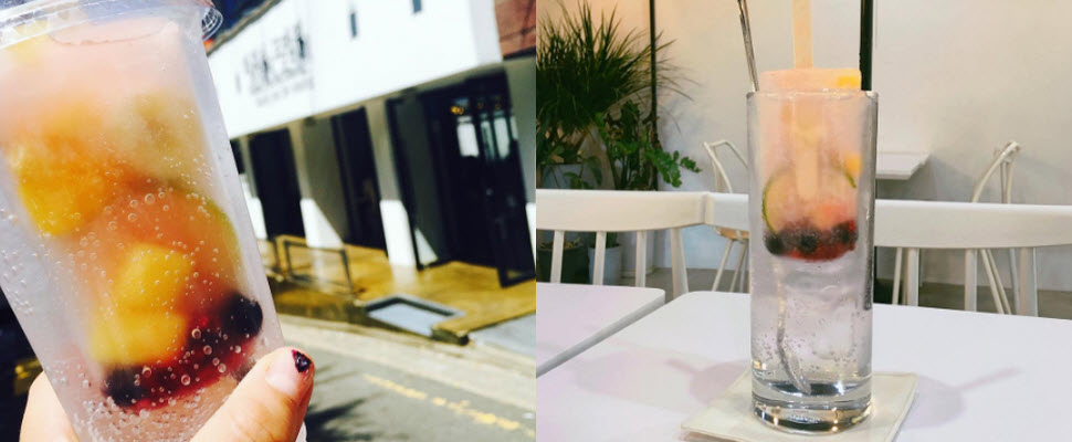 這就是今天的主角-鮮果冰棒蘇打飲!用新鮮的檸檬、鳳梨、藍莓、覆盆莓等多種水果製成冰棒,再加入蘇打飲品中,酸酸甜甜的滋味好像初戀喔~