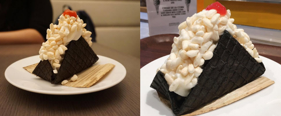 大家是不是以為中間的冰淇淋是香草或牛奶口味?其實這個冰淇淋是由米製成的,所以品嘗起來會有淡淡的米香,與外層海苔口味的甜筒餅乾一起吃下肚,是一種從未體驗過的驚人口感。野餐時拿出這個御飯糰冰淇淋,大家一定會你刮目相看!如果你是喜歡嘗鮮的女孩,到東京表參道一定要去拜訪這家創意甜點店~