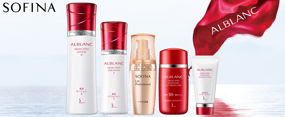 潤白美膚甦活露升級版、潤白美膚煥瑕修護乳升級版、SOFINA時光無痕緊緻精粹、潤白美膚輕透亮白防禦乳、潤白美膚瀅透水嫩瞬亮按摩晶 30g
