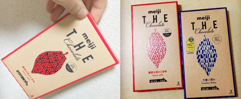 這不是最近在日本討論度極高的明治The Chocolate系列嗎?The Chocolate系列是明治今年秋冬推出的新巧克力,總共有四個口味,包含藍色的濃郁巧克力、紅色的牛奶巧克力、橘色的優雅果香與紫色的溫醇奶香。其實The Chocolate系列會在社群網站上風狂洗版的原因是有質感的包裝~