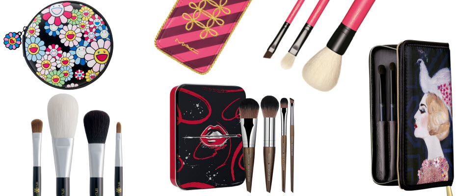 今年聖誕節植村秀與村上隆合作,限量版刷具組內含4枝可攜帶的底妝、眼妝與唇妝刷具,且所有刷具皆擁有奢華的黑色握柄,搭配閃亮金色的村上隆聯名logo和小花,並收納在印有繽紛花朵圖案的圓角包中。