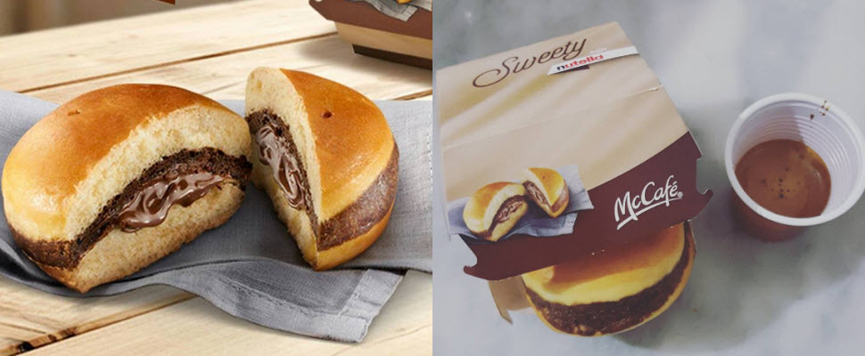 一般人會把Nutella塗在在土司、鬆餅或是餅乾上吃,但你有想過Nutella也可以搭配漢堡嗎?如果真的跟漢堡結合又會擦出什麼火花呢?最近義大利麥當勞決定與Nutella製造商費列羅合作,推出最新口味的漢堡就是巧克力榛果漢堡!該款漢堡中間沒有夾肉類、蔬菜,取而代之的是滿滿巧克力榛果醬。