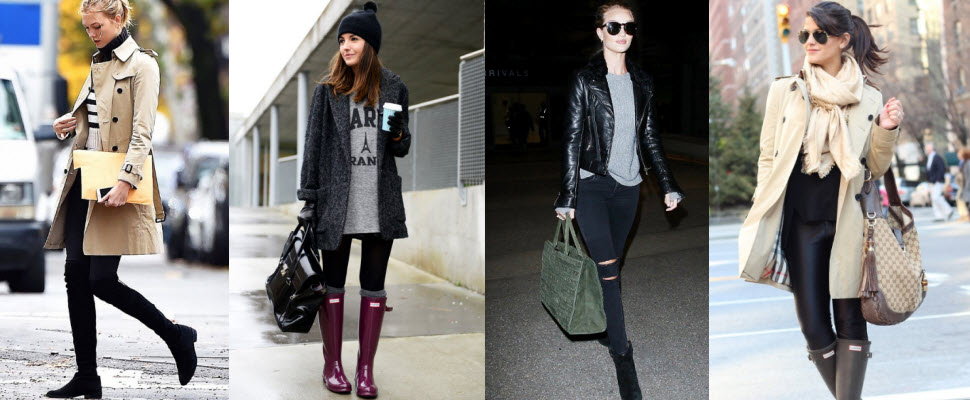 下雨天最怕的就是鞋子濕掉,許多女孩避免鞋子濕掉,腳一整天都陷在小水漥裡,會選擇穿人字拖出門,可是冷冷的冬天穿拖鞋出門真是要人命,這時候雨靴就派上用場囉~穿長褲把褲管塞進鞋管中,展現帥氣的一面,當然也可以穿短褲、短裙,搭配上鮮艷色彩的雨靴,就是走可愛風格囉~