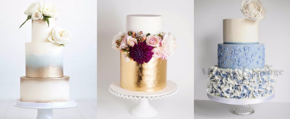 讓我們一起來看看這些美麗的蛋糕吧!大部分的婚禮蛋糕上,都會有很浪漫的花朵,左邊金色的那個真是太美了~