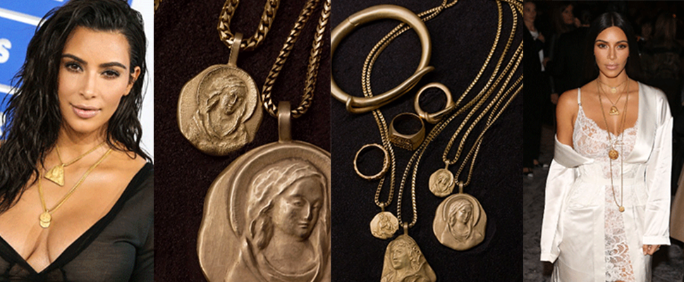 肯爺的珠寶系列事前並完全沒有半點消息,不過他的老婆金卡達夏(Kim Kardashian)其實在Yeezy Season 4的秀場上就戴著它們出現了。她在MTV音樂錄影帶的頒獎典禮上以一襲John Galliano的波浪洋裝搭配了高調的三條項鍊;兩個月後,身穿Givenchy連身裙的她,依舊搭配了老公的飾品;當她一身紅黑格子搭配牛仔褲休閒出現在L.A街頭時,則選擇了一個有著天使浮雕的項鍊配戴。