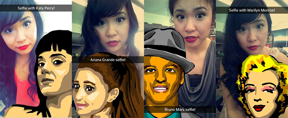 CyreneQ創作的契機純粹是出於追星的慾望,她表示,「我知道要和這世上每個名人自拍是一件很困難的事情,尤其我還想和一些過世的名人合照,這在現實生活中不可能發生。」不過呢,靠著Snapchat拍照與繪圖的功能,CyreneQ與名人的自拍照也就此誕生!