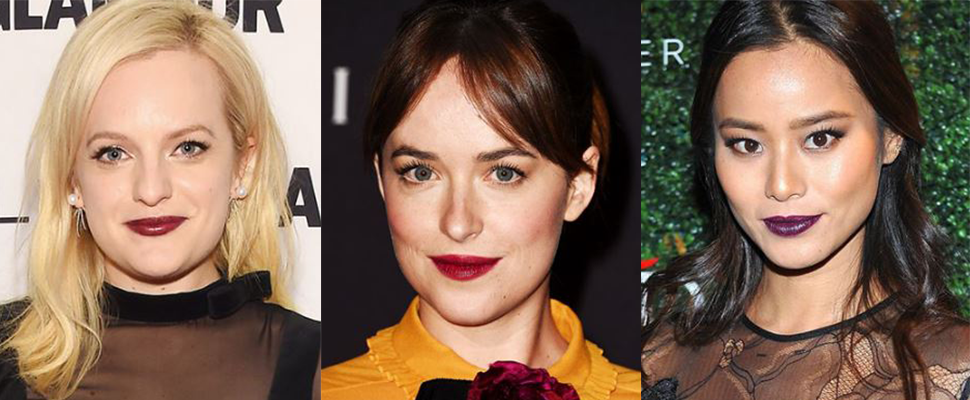 相較於紅唇的艷麗,葡萄酒色唇更能襯托優雅婉約的氣質,看看達柯塔強森的妝容,是不是在成熟中多了幾分小女人的嬌媚?