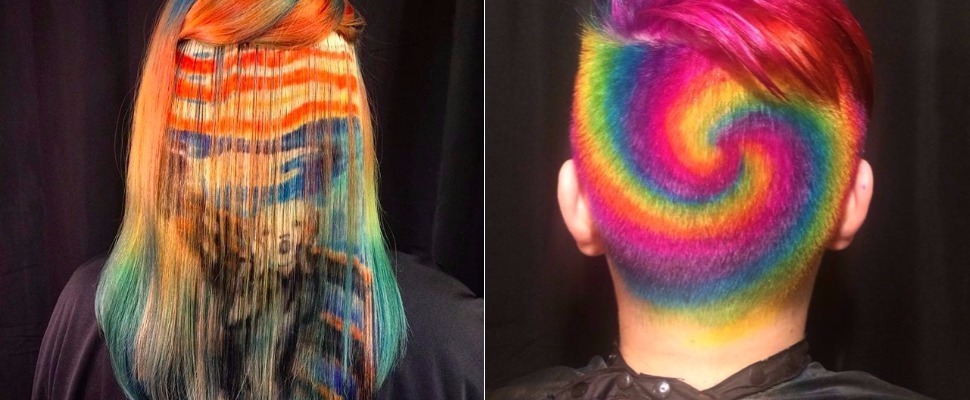 能用染髮在頭髮上做畫真的太酷了!左邊的就是梵谷的【星月夜】,而右邊的作品則是有點普普風的感覺,這在晚上看到的話應該會覺得有點可怕吧(誤XD