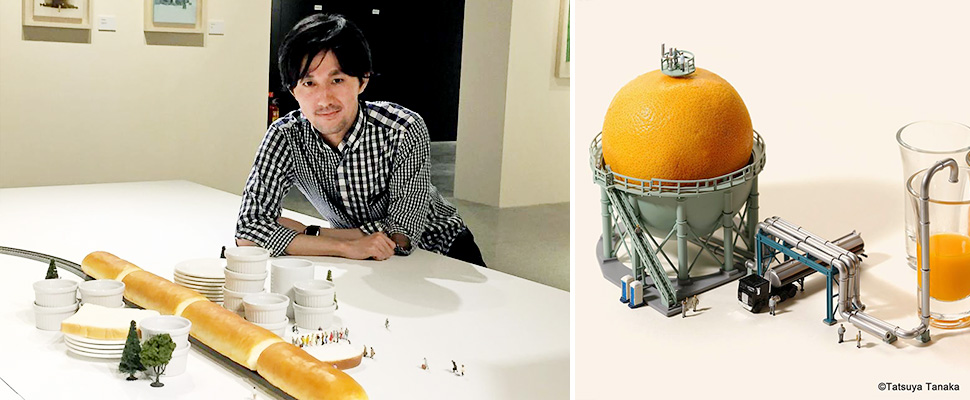 每當看完田中的作品,都忍不住會心一笑,實在太逗趣了!這些作品所用的微型人偶,皆是田中先生的私藏,相同的人偶,就有三種以上的尺寸,數量也高達3,000個。田中先生把小至米粒、芝麻的食品,或是音響、檯燈的家電等,幻化出一張張精細的作品,深植人心,重新打造日常物品嶄新的一面,讓你看到絕不是你所想到的!據說2015年順著攝影集的出版,在鹿兒島舉辦個展,吸引粉絲從全球各地去到鹿兒島,為了療癒自己的內心,大家連坐飛機都願意啊!這次大家不必坐飛機,在台北就能親眼目睹微型展的神奇。