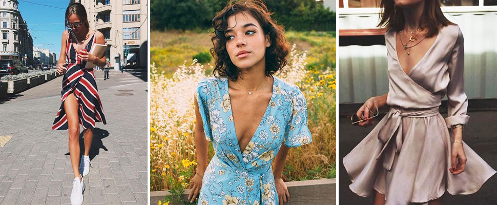 裹身裙可說是最能凸顯女人味的單品,腰部綁帶設計及領口深V裹身裙,能束出優美的線條感,貼身不緊身又足以炫耀臀部的輪廓;不過、身材還沒練好的女孩,不要輕易選擇軟料材質,會完全暴露不夠完美的曲線。