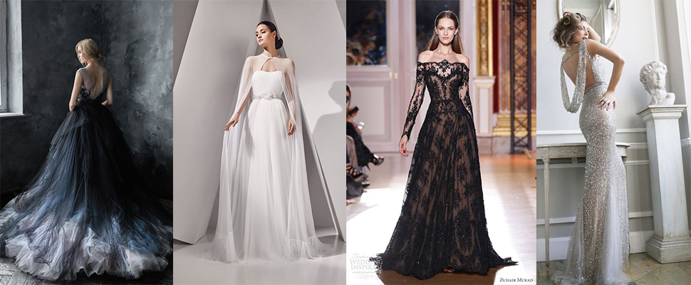 名人紅毯上一件件性感的黑色禮服是不是勾的妳心癢癢?心動的女孩就別猶豫,大膽的在婚宴換上黑色蕾絲禮服吧。平肩設計的黑色禮服多了一點端莊的氣質,削肩設計的黑色紗質禮服充滿強烈的張力,另一套全蕾絲的黑色類透視設計也很吸睛,保證能讓賓客眼睛一亮。