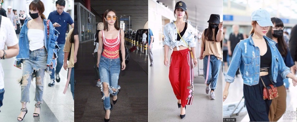 不難看出Jolin真的很喜歡丹寧穿搭,不管是外套或是寬破褲,即使不穿也要綁在腰上,讓本來就纖細的小蠻腰看起來更加纖細,一樣搭配上亮眼的小包,打亮整體穿搭,喔~別忘了金框漸層染色墨鏡,也是大明星時尚重點。